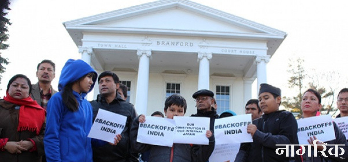 केही हप्तादेखि भारतले अन्तराष्ट्रिय सन्धि सम्झौताबिपरित अमानवीय ढंगले भूपरिवेष्ठित सार्वभौम राष्ट्र नेपालमा औषधि, खाद्यान्न, ईन्धन लगायतका अत्यावश्यक सामग्रीको आपूर्ति राेकेकोमा नेपालीहरूले भर्त्सना गरेका छन्। नेपालीहरूले अबिलम्ब उक्त क़दम फिर्ता लिइ असल छिमेकीको परिचय दिन अाग्रह गर्दै प्रदर्शन गरेको स्थानीय टेक कुँवरले बताए।