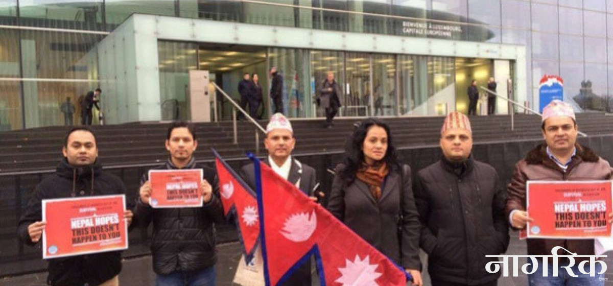 एनआरएन प्रमुख संरक्षक जीवा लामिछानेको नेतृत्वमा भएको विरोध प्रदर्शनीमा एनआरएन लग्जेम्बर्ग, त्यहाँ रहेका नेपाली संघ संस्था र नेपाली विद्यार्थी यूरोपीयन संसद अगाडि जम्मा भएर भारतविरुद्ध नाराबाजी गरेका थिए। प्रर्दशनमा गैरआवासीय नेपाली संघका उपाध्यक्ष कुमार पन्त, महासचिव बद्री केसी, एनआरएन महिला संयोजक सपिला राजभण्डारी, एनआरएन लग्जेम्बर्गका अध्यक्ष रमेश तोयना लगायतले प्रर्दशनमा भाग लिएका थिए।