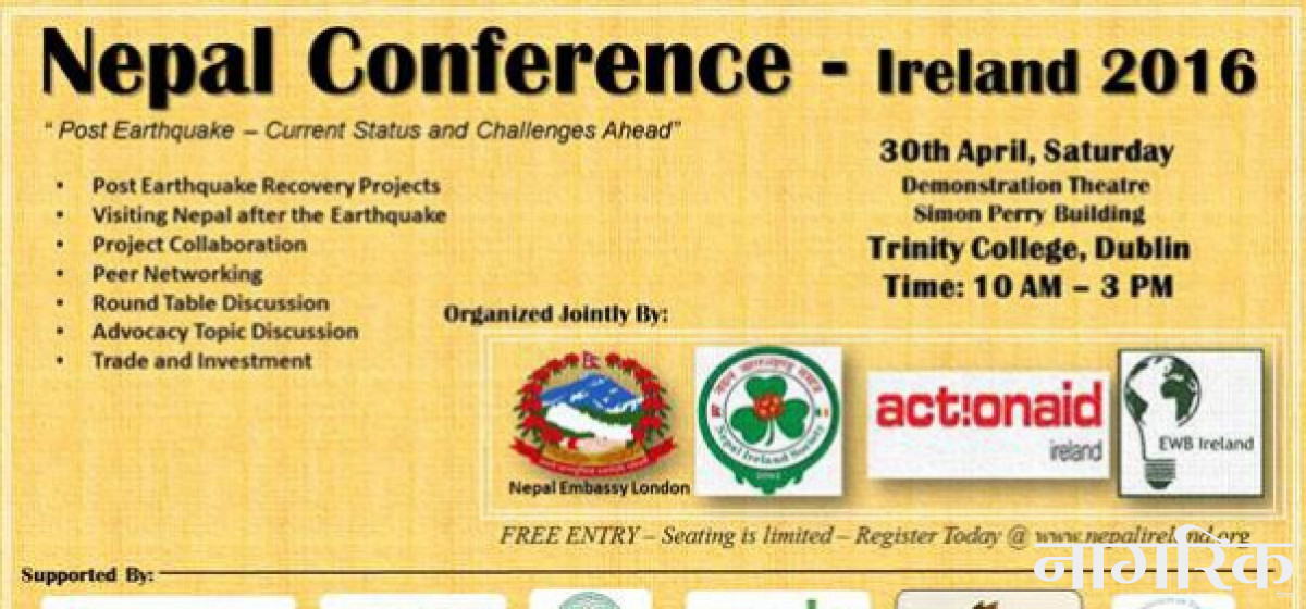 गतसाल भाद्र महिनामा पनि नेपाल आयरल्याण्ड सोसाइटिले नेपाल भूकम्प सम्मेलन आयोजना गरेको थियो । जसबाट नेपाल आयरल्याण्ड एलाएन्स बनेको थियो ।