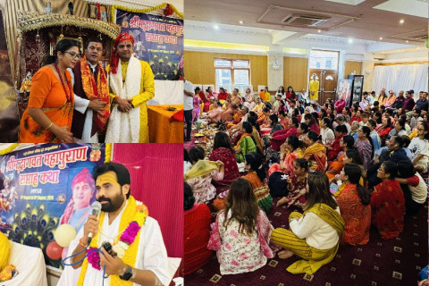 बेलायतको नेपाली समाजमा पहिलोपटक सार्वजनिक रूपमा आयोजना गरिएको साताव्यापी श्रीमद्भागवत कथा लन्डनको साउथलस्थित विश्व हिन्दू मन्दिरमा एक ऐतिहासिक अध्याय लेख्दै सम्पन्न भएको छ।