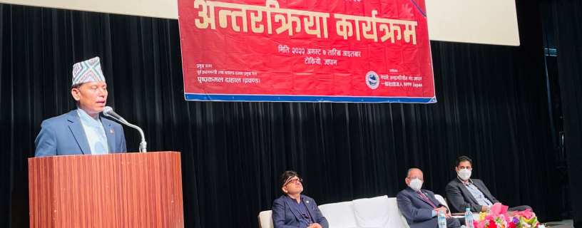 पाँचदिने जापान भ्रमणमा रहेका अध्यक्ष दाहालले आज टोकियोस्थित नारिता अन्तर्राष्ट्रिय विमानस्थलमा नेपाली पत्रकारसँगको कुराकानीमा नेपाल–जापान सम्बन्धका बारेमा त्यहाँका राजनीतिक दलका नेतासँग आफूले छलफल गर्ने बताए।