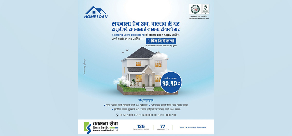 कामना सेवा विकास बैंकले ग्राहकको कर्जाको लागि नयाँ ब्याजदर १२.१२ प्रतिशत सार्वजनिक गरेको छ।