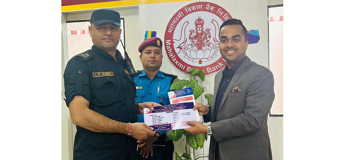 बैंकको केन्द्रीय कार्यालय दरबारमार्गले प्रहरी वृत्त मालीगाँउलाई चाडपर्वको समयमा हुन सक्ने अपराधिक क्रियाकलापलाई नियन्त्रण गर्न, सार्वजनिक सुरक्षा तथा अमनचयन कायम राख्न, सम्भावित अपराधको रोकथाम, तथा नियन्त्रण कार्यमा सहयोग पुर्याउने उद्देश्यले जनचेतनामूलक पुस्तिका र आवश्यक सम्पर्क नम्बरसहितको स्टिकर हस्तान्तरण गरेको हो।