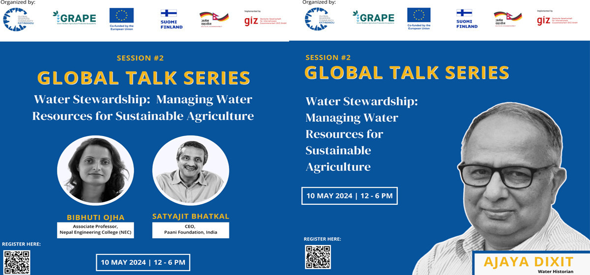 ग्लोबल शेपर्स कम्युनिटीका अनुसार यस सत्रको विषय ‘पानी भण्डारीपनस् दिगो कृषिका लागि जलस्रोतको व्यवस्थापन’ हो। यो ग्लोबल टक सिरिजलाई ग्रिन रेजिलियन्ट एग्रीकल्चर प्रोडक्टिव इकोसिस्टम (जीआरएपीइ) परियोजनाले समर्थन गरेको छ।