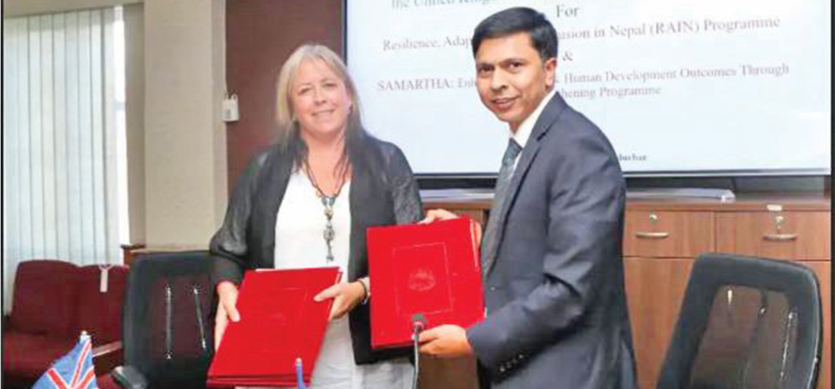 नेपालमा उत्थानशीलता, अनुकूलनता तथा समावेशिता कार्यक्रमको लागि ३८.५ मिलियन बेलायती पाउन्ड अनुदान सहायता रकम रहेको छ। कार्यान्वयन अवधि ६ वर्ष रहेको यो कार्यक्रम गृह मन्त्रालय र वन तथा वातावरण मन्त्रालयअन्तर्गत विपद् जोखिम व्यवस्थापन र जलवायु परिवर्तनलाई सुदृढ गर्न लागु हुनेछ। कार्यक्रम कर्णाली, लुम्बिनी र मधेश प्रदेशमा सञ्चालन हुने अर्थ मन्त्रालयले जनाएको छ।