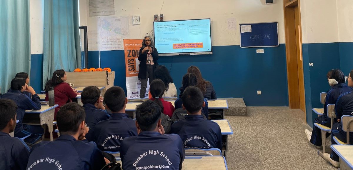 एनसेल फाउन्डेसन, साथी संस्था र जोन्टा क्लबअफ काठमाडौंले लैङ्गिक हिंसा अन्त्य गर्ने आफ्नो साझा प्रतिबद्धतालाई अगाडि बढाउन ‘ओरेन्ज द स्कूल’अभियान संचालन गरिरहेका छन् । यो अभियान लैङ्गिक हिंसा विरुद्धको १६ दिने अभियान र ग्लोबल जोन्टा ‘सेज नो’ अभियानअन्तर्गत आयोजना गरिएको कार्यक्रममध्ये एक हो । यस अभियानअन्तर्गत हालसम्म १० विद्यालयमा करिब १,५०० विद्यार्थीहरूलाई प्रत्यक्ष रूपमा सहभागी गराइसकिएको छ ।