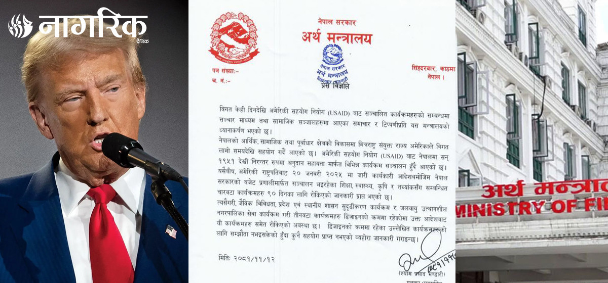 पछिल्लो समय अमेरिकी राष्ट्रपति ट्रम्पले २० जनवरी २०२५ मा जारी कार्यकारी आदेशबमोजिम नेपाल सरकारको बजेट प्रणालीमार्फत सञ्चालन भइरहेका शिक्षा, स्वास्थ्य, कृषि र तथ्याङ्कसँग सम्बन्धित चार वटा कार्यक्रमहरू ९० दिनका लागि रोकिएको मन्त्रालयले जानकारी प्राप्त गरेको विज्ञप्तिमा उल्लेख छ।