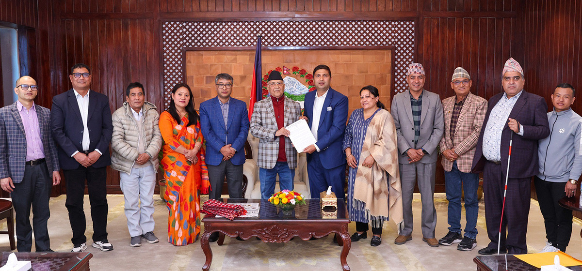 प्रधानमन्त्री निवास, बालुवाटारमा आज महासङ्घका अध्यक्ष अर्जुनकुमार भट्टराईसहितको टोलीले सामाजिक संस्थामैत्री नीति र कानुनको बन्नुपर्ने, नेपाल विकास सम्मेलनको आयोजना गरिनुपर्ने लगायत विषय समेटिएको घोषणापत्र बुझाएको हो। सो अवसरमा प्रधानमन्त्री ओलीले नयाँ नेतृत्वलाई बधाई दिँदै सामाजिक रुपान्तरण र विकासका काममा सफलता हासिल गर्न शुभकामना दिए।