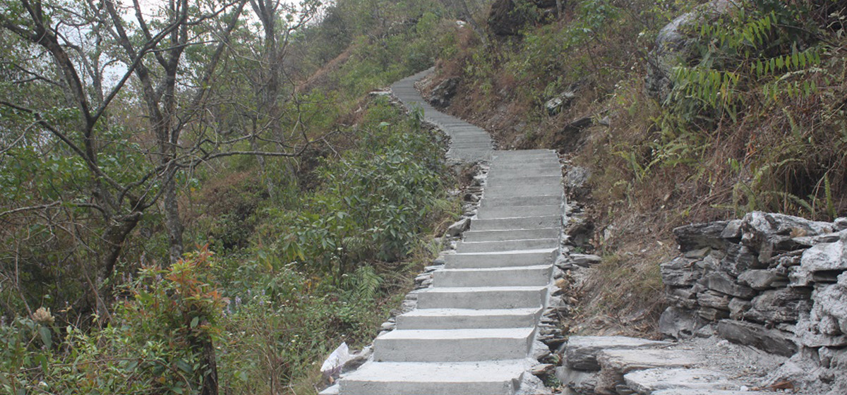 रेलिङसहितको पक्की पदमार्ग निर्माण बढी खर्चिलो हुने रिजालको भनाइ छ । यसवर्ष पदमार्ग निर्माणका लागि गत फागुन ११ गते उपभोक्ता समितिमार्फत सम्झौता गरी काम अगाडि बढेको भन्दै हालसम्म ५० प्रतिशत बढी प्रगति भएको उनले जानकारी दिए। उनका अनुसार उक्त आयोजना यही महिनाभित्र सम्पन्न गर्नेगरी तीव्र गतिमा काम भइरहेको छ ।