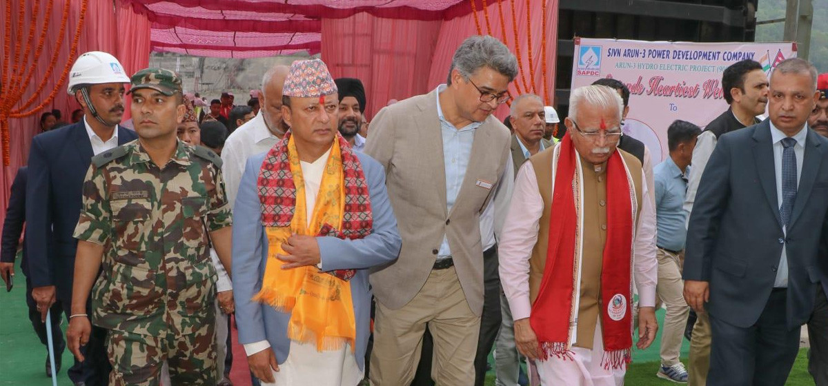 ऊर्जा, जलस्रोत तथा सिँचाइमन्त्री दीपक खड्का र भारतका विद्युत्, आवास तथा शहरी मामिलामन्त्री मनोहरलाल खट्टरले अरुण तेस्रो जलविद्युत् आयोजनाको स्थलगत अवलोकन गरेका छन्।