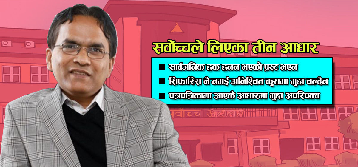 सर्वोच्च प्रशासनले उक्त रिट दरपीठ गर्न तीन वटा कुरालाई मुख्य आधारमा लिएको सर्वोच्चका सूचना अधिकारी एवं उपरजिस्टार नीराजन पाण्डेले जानकारी दिए।