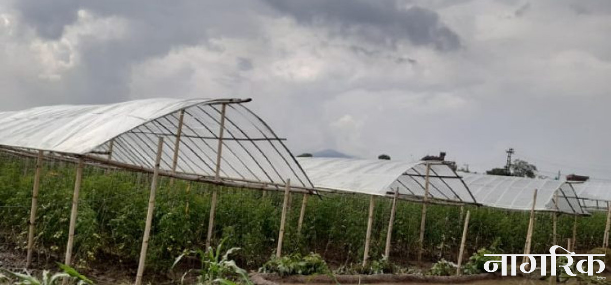 बुधबार दिउँंसो यहाँं परेको हावाहुरी र असिनापानीले सयौं व्यवसायीक गोलभेडा खेतीमा क्षति पुर्याई लाखौंका गोलभेडा नष्ट भएका छन् । ब्यवसायीक कृषि फर्महरु नष्ट भई सयौं व्यवसायीक फर्मका गोलभेडामा क्षति पुगेका हुन् । रोपाइका लागि पानी पर्दा धेरै किसानहरु खुसी देखिए पनि यसबेला गोलभेडा खेती गरेका किसानहरु दुःखी भएका छन् । पानीसँगै हावाहुरी र असिनाले गोलभेडासहितको नगदेबाली सबै नष्ट पारेको हो ।