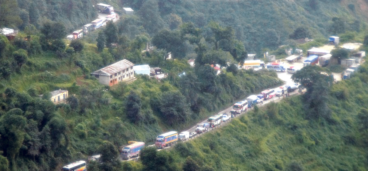 पाल्पाको रामपुरबाट काठमाडौं फर्किंदै गरेका यात्रु अनिल शर्माले सडक विभागले नियमित मर्मतसम्भार नगर्दा नौबिसे–नागढुंगा सडक खण्डमा मंगलबार चार घन्टा जाममा फसेको गुनासो गरे। ‘अरू बेला मर्मतसम्भार नगरे पनि दसैंको बेला त गरे हुन्थ्यो नि ! अहिले यात्रुहरू दैनिक चारदेखि १२ घन्टासम्म नौबिसे–नागढुंगाको जाममा फस्दै आइरहेका छन्,’ उनले भने, ‘राजधानी भित्रिने मुख्य नाकाकै यस्तो हालत छ भने अन्य ठाउँको सडकको हालत कस्तो होला ?’ शर्माले सरकारलाई सडकबाट कर मात्रै उठाउने नभई नियमित मर्मतसम्भार गर्न समेत सुझाए ।
