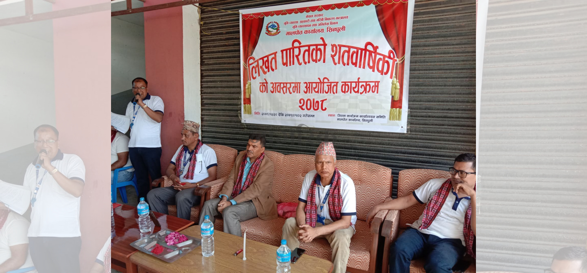 सिन्धुलीमा लिखत पारितको शतवार्षिकी मनाइएको छ। नेपालमा पोता रजिष्ट्रेशन अड्डाबाट सुरु भएको लेख्य प्रमाण दर्ताको एक सय वर्ष पूरा भएको अवसरमा शतवार्षिकी मनाइएको हो।