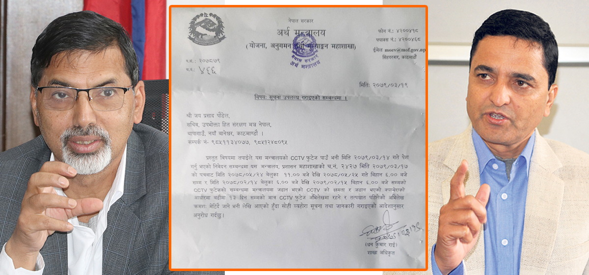 अर्थ मन्त्रालयको योजना अनुगमन तथा मूल्यांकन महाशाखाले आइतबार (हिजो) पत्र मार्फत सीसीटिभी फुटेजको अभिलेख १३ दिनसम्म मात्र रहने जानकारी दिएको थियो।