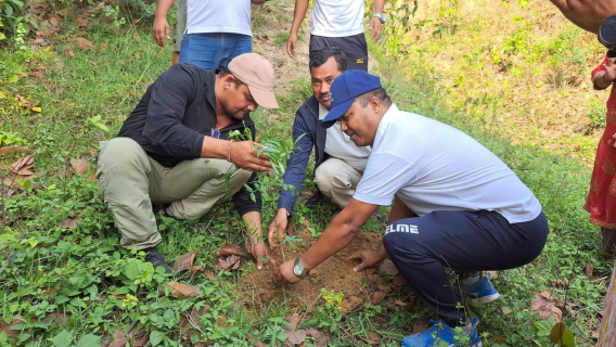 वीरेन्द्रनगर नगरपालिका–१ सोलीघोप्टेस्थित कृष्ण सामुदायिक वन उपभोक्ता समूहमा एनएमबी बैंकले विश्व वातावरण दिवसको अवसरमा वृक्षारोपण गरेको छ।