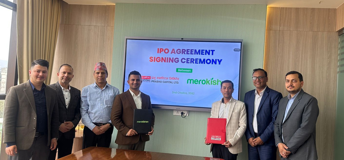 सोमबार कमलादीस्थित प्रभु क्यापिटलको कार्यालयमा आयोजित कार्यक्रममा दुवै कम्पनीबीच आईपीओ निष्कासनसम्बन्धी सम्झौता पत्रमा हस्ताक्षर गरिएको हो। सम्झौताअनुसार प्रभु क्यापिटलले मेरो किसानको शेयर सर्वसाधारणमा बिक्री गर्ने व्यवस्थापन गर्नेछ।