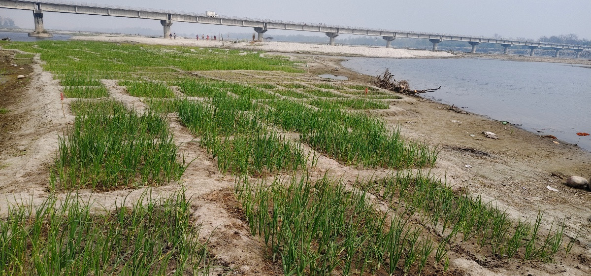 कैलालीको टीकापुर र बर्दियाको राजापुर नगरपालिका जोड्ने सत्ती पुल आसपास क्षेत्रमा आजभोलि हरियाली छ। ढुङ्गा नभएको बालुवा भएको क्षेत्रमा सानासाना प्लट बनाइएका छन्। जहाँ लहरै प्याजको खेती छ। वडा नं ८ फाँटागाउँका ५०-६० घरपरिवारले कर्णाली नदी किनार तथा टापुमा प्याजखेती गर्दै आएका छन्। बर्सेनि उक्त सङ्ख्या बढ्दै गएको देखिन्छ। बगरबाट बर्सेनि लगभग ७०० क्विन्टल बढी प्याज उत्पादन हुने गरेको छ। ‘एक परिवारले न्यूनतम पाँच-छ क्विन्टल प्याज उत्पादन गर्नुहुन्छ। उत्पादन सोचेभन्दा राम्रो हुन्छ,’ स्थानीय सम्झनी चौधरी भन्छिन्, ‘अहिले बगरमा खेती गर्ने किसानको सङ्ख्या पनि बढेको छ। पहिलेको भन्दा क्षेत्र पनि बढेको छ।’ उनले अन्य खेतबारीमा लगाएको प्याजभन्दा बगरमा गरेको प्याजको उत्पादन राम्रो हुने गरेको बताइन्।