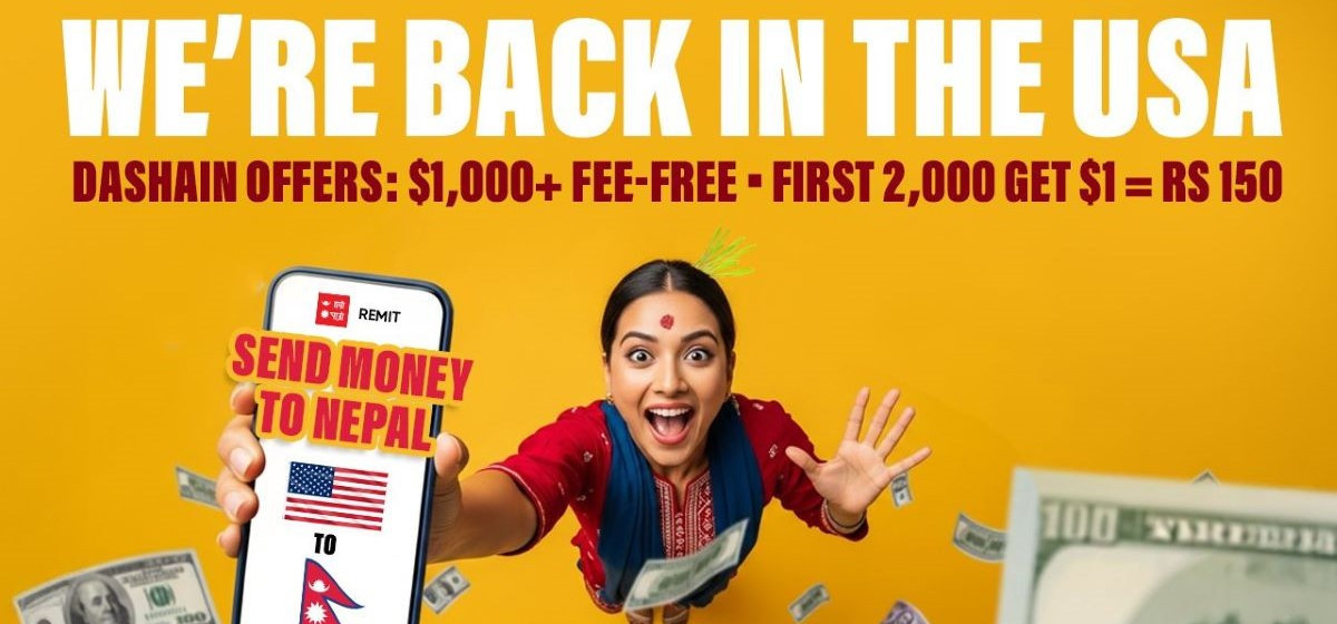 दसैंको शुभ अवसरमा, हाम्रो पात्रो रेमिट मार्फत प्रयोगकर्ताहरूले १,००० अमेरिकी डलर वा सोभन्दा बढी रकम ट्रान्सफर गर्दा कुनैपनि अतिरिक्त शुल्क तिर्नु पर्ने छैन। दसैंमा परिवार र आफन्तलाई आर्थिक साथ दिन चाहने पहिलो ५,००० नयाँ प्रयोगकर्ताहरूले आफ्नो पहिलो ट्रान्सफरमा १ अमेरिकी डलर बराबर रू. १५० को विशेष विनिमय दर प्राप्त गर्नेछन्।