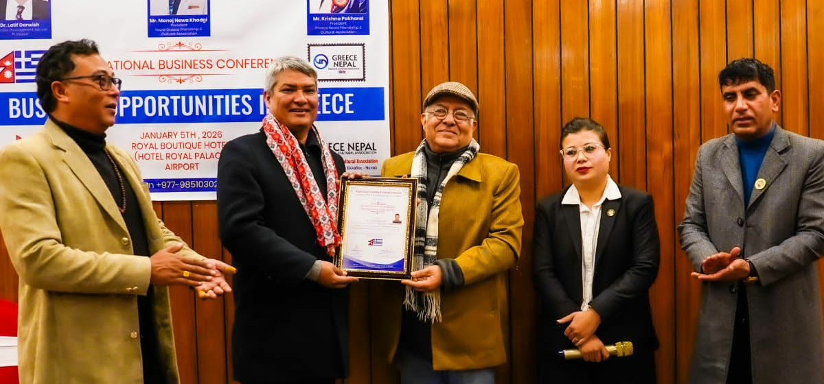 ‘ग्रिसमा व्यावसायिक अवसरहरू’ विषयक अन्तर्राष्ट्रिय व्यापार सम्मेलन काठमाडौंमा सम्पन्न भएको छ। सम्मेलनले नेपाल–ग्रिसबिच लगानी, व्यापार तथा सहकार्यका सम्भावनाबारे कूटनीतिज्ञ, व्यवसायी तथा नेपाल–ग्रिस मैत्री संस्थाका प्रतिनिधिलाई एकै मञ्चमा ल्याएको थियो।