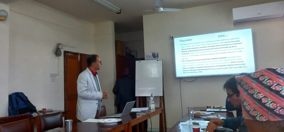 त्रिभुवन विश्वविद्यालयअन्तर्गत जनसंख्या अध्ययन केन्द्रीय विभाग (सिडिपिएस) को दर्शनशास्त्र (एम.फिल.) को शोधपत्र अनुसन्धानका क्रममा शोधार्थी चेतनाथ अधिकारीले रामेछाप जिल्लामा श्रम बसाइँसराइ, रेमिट्यान्सको उपयोग र घरपरिवारको कल्याणबीचको सम्बन्धलाई उजागर गरेका हुन्।
