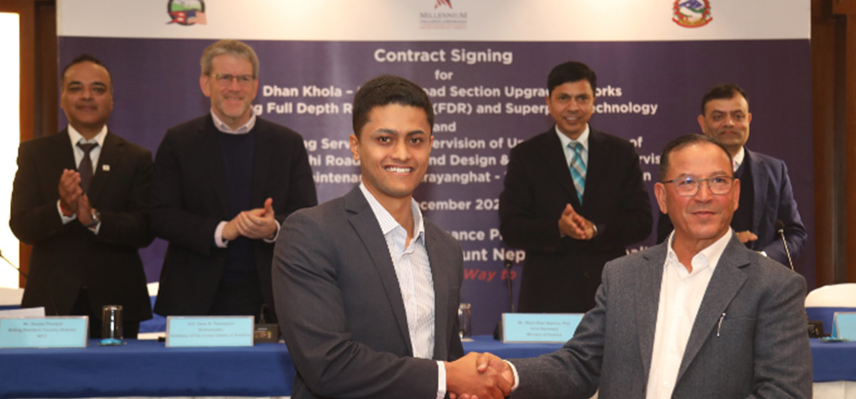 एमसिए–नेपालले एमसिसी कम्प्याक्टअन्तर्गत सडक मर्मत कार्य कार्यान्वयनका लागि करिब २.३७ करोड अमेरिकी डलर (तीन अर्ब ४१ करोड) मूल्यका दुई वटा महत्वपूर्ण सम्झौतामा सोमबार हस्ताक्षर भएको छ। एमसिए–नेपालका कार्यकारी निर्देशक खड्गबहादुर विष्ट तथा शर्मा–कुमार निर्माण कम्पनीका प्रतिनिधि सौरभ शर्माले सम्झौतामा हस्ताक्षर गरे। यो सडक स्तरोन्नतिमा पहिलो पटक नयाँ प्रविधि प्रयोग गर्न लागिएको हो। ‘फुल डेप्थ रिक्लेमेसन तथा सुपरपेभ प्रविधि’ प्रयोग गर्ने एमसिए नेपालले जनाएको छ।