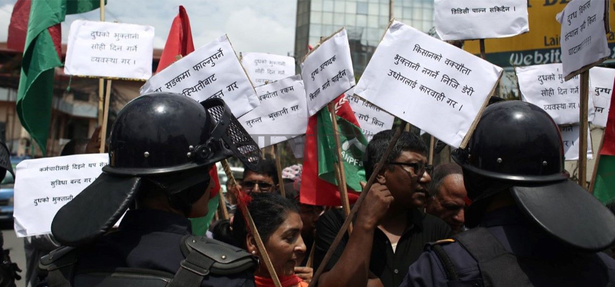 सरकारी स्वामित्वको दुग्ध विकास संस्थान (डिडिसी) देखि निजी डेरी भुक्तानी नदिए पनि किसान आन्दोलित भएका हुन्। रकम भुक्तानी नपाएपछि पशुलाई दाना खुवाउन, बैंकको ब्याज तिर्न, घर खर्च चलाउन कठिन भएकाले आन्दोलन गर्न बाध्य भएको किसानले बताएका थिए। केन्द्रीय दुग्ध सहकारी संघका महासचिव रामप्रसाद आचार्यका अनुसार तीनदेखि ६ महिनासम्म दुधको करिब साढे तीन अर्ब भुक्तानी पाउन बाँकी रहेको छ।