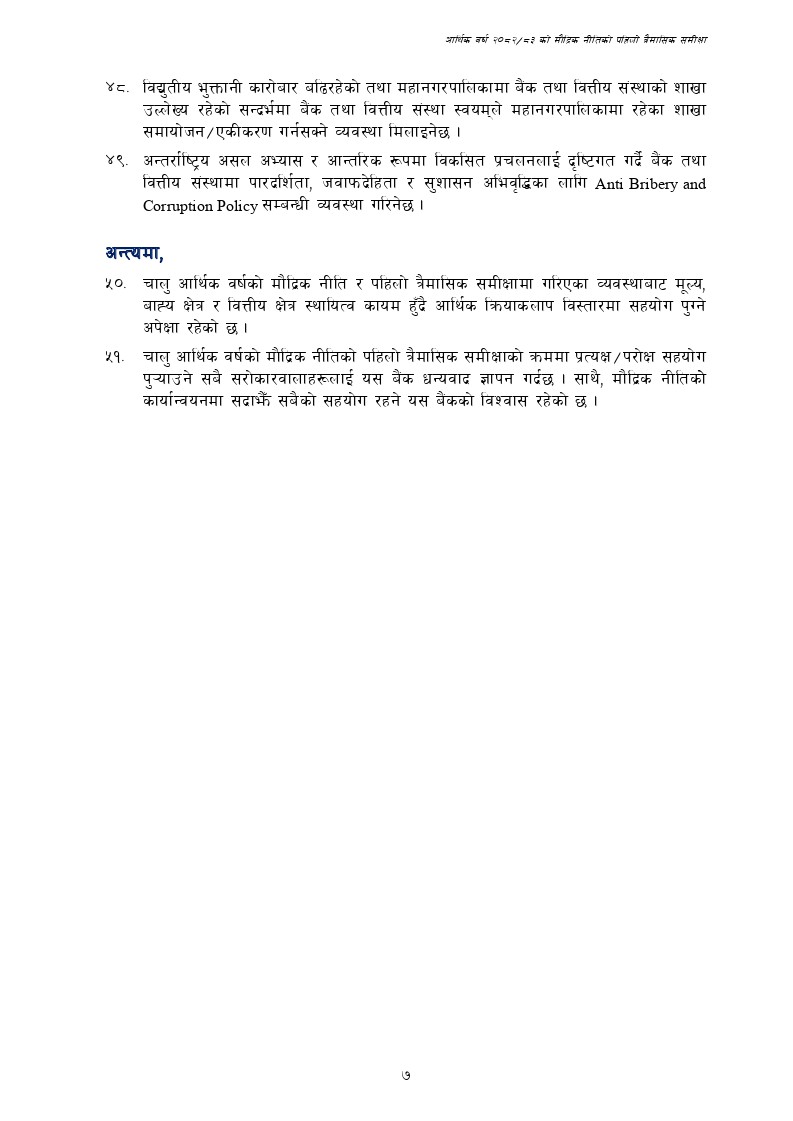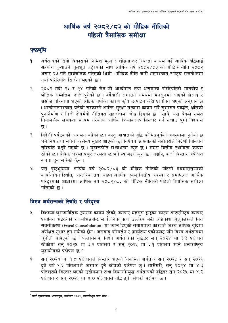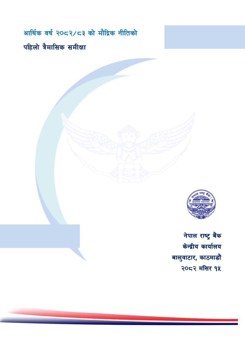 नेपाल राष्ट्र बैंकले चालु आर्थिक वर्षको पहिलो त्रैमासिक मौद्रिक नीति समीक्षा सार्वजनिक गरेको छ।