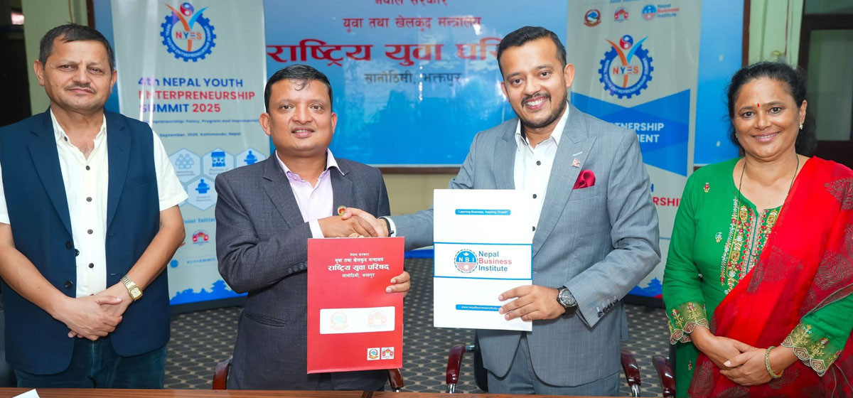 सम्मेलन आयोजनाका लागि मंगलबार राष्ट्रिय युवा परिषद्का कार्यकारी उपाध्यक्ष सुरेन्द्र बस्नेत र नेपाल बिजनेस इन्स्टिच्युटका कार्यकारी अध्यक्ष विशाल गैरेबीच एक समझदारी पत्रमा हस्ताक्षर भएको छ।