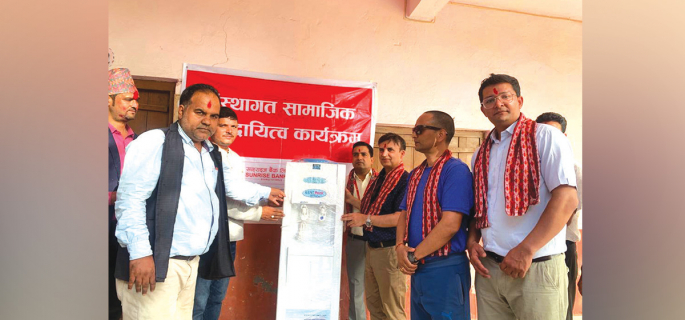 सनराइज बैंकले सुदूरपश्चिम प्रदेशको कैलाली जिल्लामा रहेको घोडाघोडी बहुमुखी क्याम्पसमा वाटरप्युरिफायर प्रदान गरेको छ।