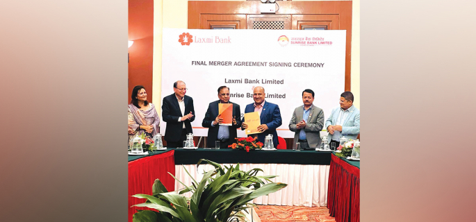 लक्ष्मी बैंक र सनराइज बैंकबीच मर्जर सम्बन्धमा अन्तिम सम्झौता सम्पन्न भएको छ। लक्ष्मी बैंकको तर्फबाट सञ्चालक दिनेश पौड्याल तथा सनराइज बैंकको तर्फबाट सञ्चालक इ. बच्छराज तातेडले मर्जरसम्बन्धी अन्तिम सम्झौतापत्रमा हस्ताक्षर गरेका छन्।