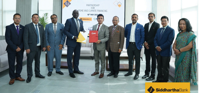 सिद्धार्थ बैंक र विश्व बैंक समूह अन्तर्गतको इन्टरनेसनल फाइनान्स कोअपरेसन (आइएफसी) बीच नेपालका लघु, साना तथा मझौला उद्यमीहरूको व्यवसायमा र जलवायु वित्तपोषणमा लगानी गर्ने सम्झौता भएको छ।