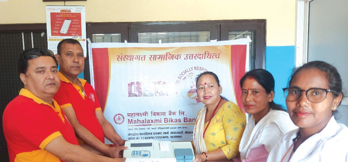 महालक्ष्मी विकास बैंकका शाखाहरूद्वारा संस्थागत सामाजिक उत्तरदायित्व अन्तर्गत स्वास्थ्य प्रतिष्ठान, नेपाल प्रहरी तथा विद्यालयलाई सहयोग गरेका छन्।