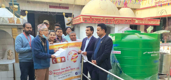 महालक्ष्मी विकास बैंकका शाखाहरूद्वारा संस्थागत सामाजिक उत्तरदायित्वअन्तर्गत विद्यालय, टोल सुधार समिति र मन्दिरलाई सहयोगका कार्यक्रमहरू सम्पन्न भएका छन्।