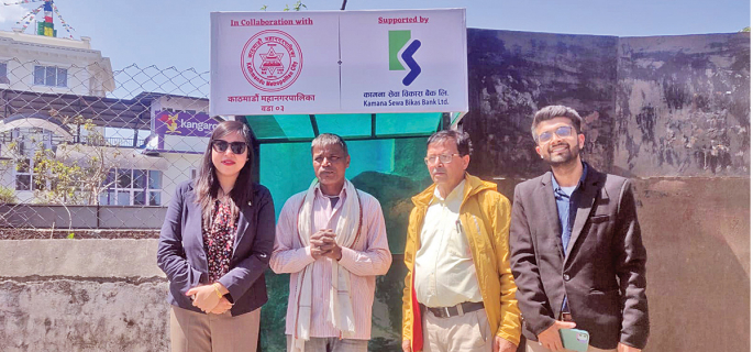 कामना सेवा विकास बैंकले सामाजिक उत्तरदायित्व कार्यक्रम अन्तर्गत काठमाडौं महानगरपालिका वडा ३ को कार्यालय र जोड इनिसियटिभसँगको सहकार्यमा बाँसबारी काठमाडौंस्थित जुत्ता मेन्डरको लागि निर्माण गरिएको एक बुथ प्रदान गरेको छ।