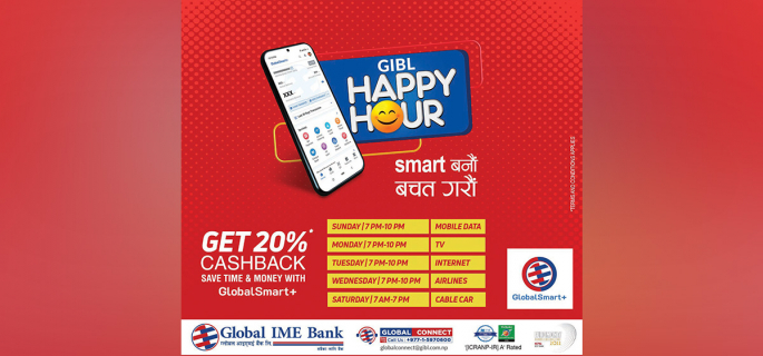 ग्लोबल आइएमई बैंकले ग्राहकका लागि ‘ह्याप्पी आवर्स योजना’ सार्वजनिक गरेको छ।