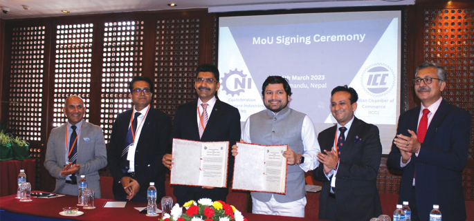 नेपाल उद्योग परिसंघ र इण्डियन च्याम्बर अफ कमर्सबीच लगानी, व्यवसाय प्रवर्द्धन लगायतमा सहकार्य गर्न समझदारी भएको छ।