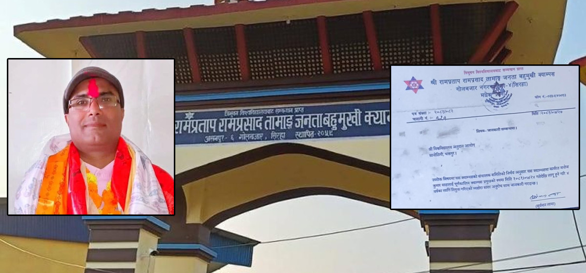 तर, क्याम्पस प्रमुख बनाइएका मनोज साह भने बेखबर छन्। उनी भन्छन्, ‘यो विषयमा मलाइ केही जानकारी छैन्। कसैले औपचारिक अनौपचारिक कुनैपनि रुपमा मैले जानकारी पाएको छैन्। क्याम्पस प्रमुख अहिले पनि किशोर साह नै हुन्।’