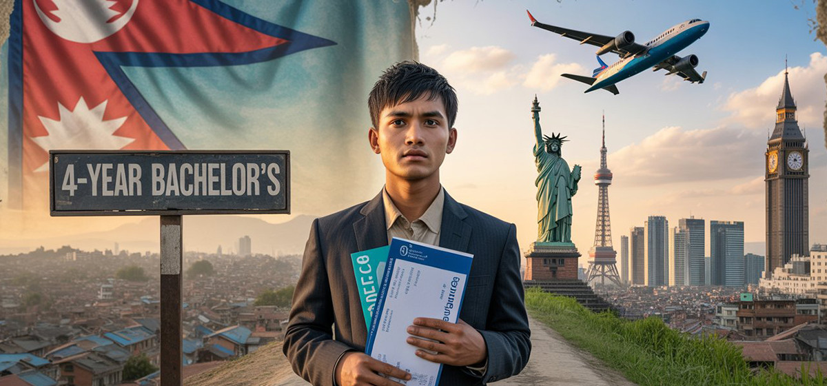 नेपालमा चार वर्षे स्नातक कार्यक्रमले विद्यार्थीलाई आर्थिक, मानसिक र समयको भार बढाएको तथा उच्च शिक्षाका लागि बिदेसिन प्रेरित गरिरहेको तथ्यांकले देखाएको छ।