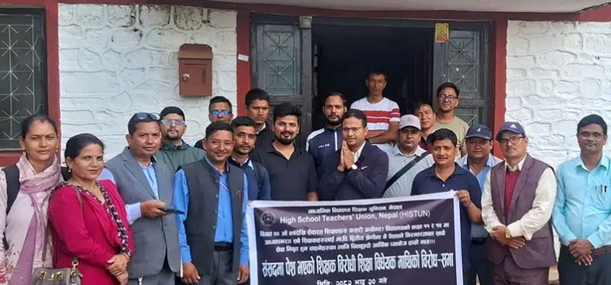 माध्यमिक विद्यालय शिक्षक युनियन नेपाल (हिस्टुन) ले शनिबार देशभर प्रदर्शन गरेको छ । राज्यले नयाँ शिक्षा ऐन जारी गर्न लागिरहँदा शिक्षा विधेयकमा समेटिएका प्रावधानले शिक्षकको पेशागत भविष्य सुनिश्चित नहुने ठहरका साथ देशभर आन्दोलन चलिरहेको हिस्टुनले जनाएको छ ।