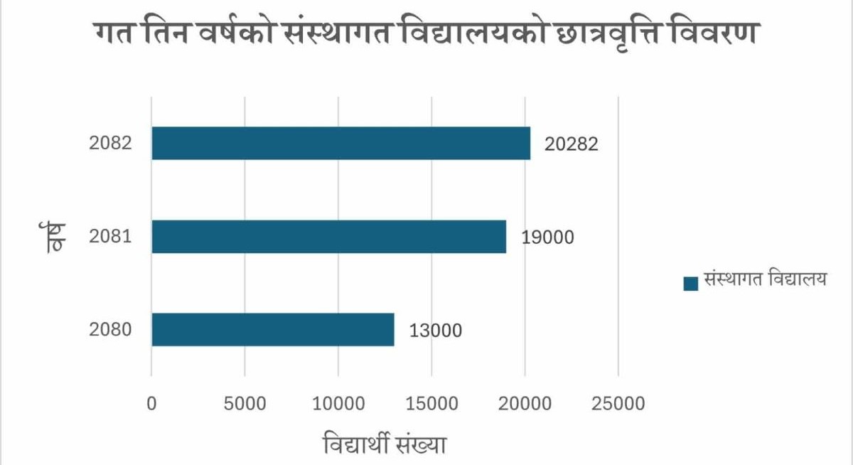 काठमाडौं महानगरपालिकाले यसवर्ष २० हजार २ सय ८२ जना विद्यार्थीलाई २ अर्ब २५ करोड रुपैयाँ बराबरको छात्रवृत्ति प्रदान गरेको छ। कानुन कार्यान्वयनमा आएको तेस्रो वर्षमा यो सफलता हात लागेको महानगरको दाबी छ । पहिलो वर्ष १३ हजार र दोस्रो वर्षमा १९ हजार विद्यार्थीले छात्रवृत्ति पाएका थिए। यसवर्ष कक्षा १ देखि १० सम्मका १६ हजार ९ सय ८० र कक्षा ११ का ३ हजार ३ सय २ जनाले छात्रवृत्ति प्राप्त गरेका छन्।