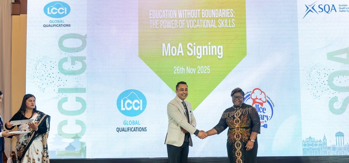 २०२५ नोभेम्बर २६ मा काठमाडौंस्थित होटल र्याडिसनमा आयोजित “Education Without Boundaries: The Power of Vocational Education” सेमिनारका अवसरमा LCCI Global Qualifications र Mina Vocational Institute बीच Memorandum of Agreement (MoA) हस्ताक्षर गरिएको थियो।