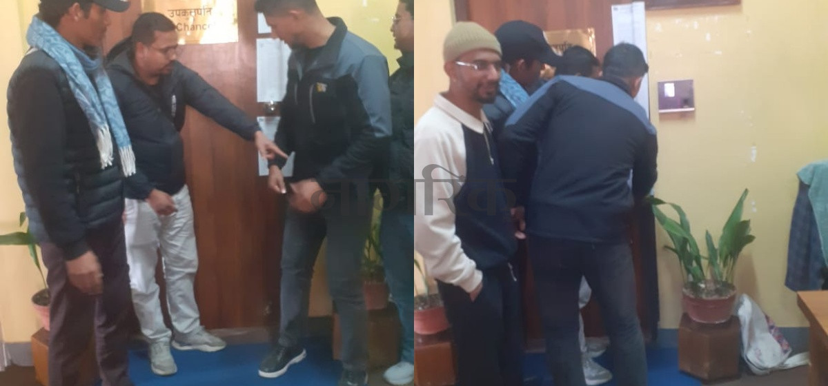 त्रिभुवन विश्वविद्यालयका पदाधिकारीले विद्यार्थीसँग गरेको शुल्क समायोजनको सहमति कार्यान्वयनको माग गर्दै क्रान्तिकारी विद्यार्थीले विश्वविद्यालयका पदाधिकारीको कार्यकक्षमा अनिश्चितकालीन तालाबन्दी गरेका छन्।