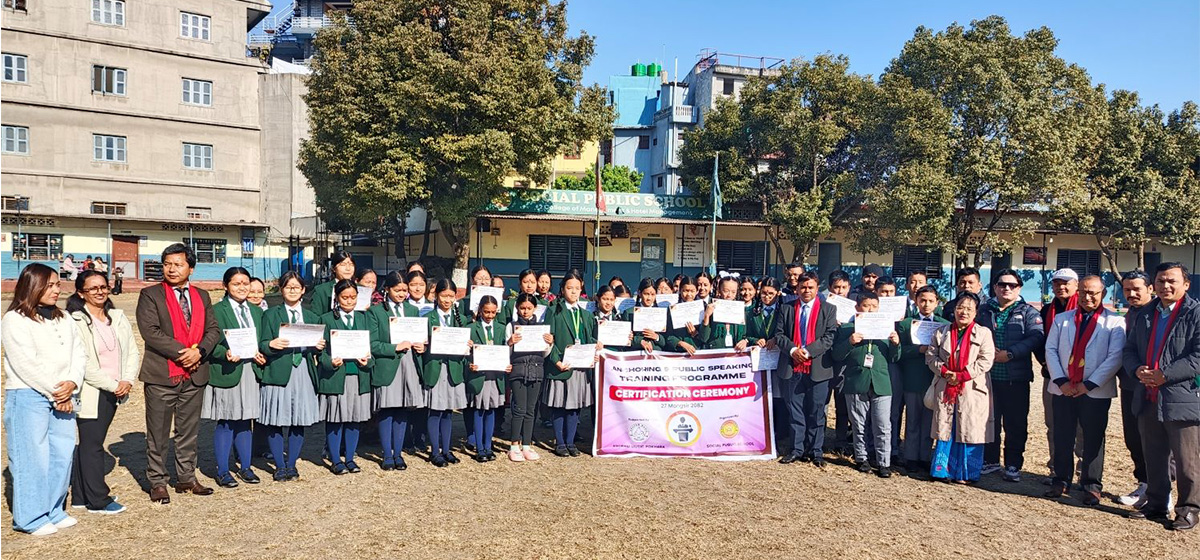 पोखराकाे बुद्धचोकस्थित सोसल पब्लिक स्कुलमा उद्घोषण तथा भाषणकला सम्बन्धी दुईहप्ते तालिम भएको छ।