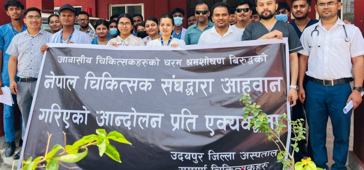 निजी अस्पतालमा कार्यरत स्वास्थ्यकर्मीमाथिको अन्यायविरुद्ध सङ्घर्षरत नेपाल चिकित्सक सङ्घको आन्दोलनप्रति समर्थन जनाउँदा देशभरका सरकारी अस्पताल प्रभावित भएका छन्। सङ्घको आह्वानमा भएको आन्दोलनलाई समर्थन गर्ने स्वास्थ्यकर्मीका कारण उदयपुरको जिल्ला अस्पतालको सेवा ठप्प भएको छ।