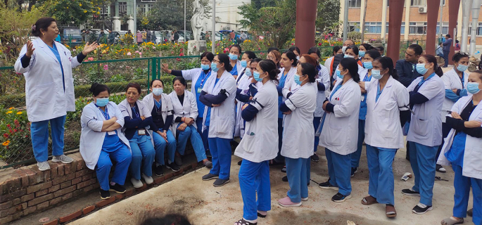 मासिक तलबबाट १ प्रतिशत रकम कट्टा गरी उपचार कोषमा जम्मा गर्ने विषयमा गम्भीर असहमति जनाउँदै कर्मचारीहरूले पाखुरामा कालो पट्टि बाँधेर शान्ति पूर्ण विरोध प्रदर्शन गरेका छन्।