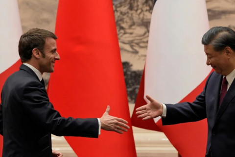 विमानस्थलमा चिनियाँ विदेशमन्त्री वाङ यीले म्याक्रोन र उनकी श्रीमती ब्रिगिटलाई स्वागत गरेका थिए।