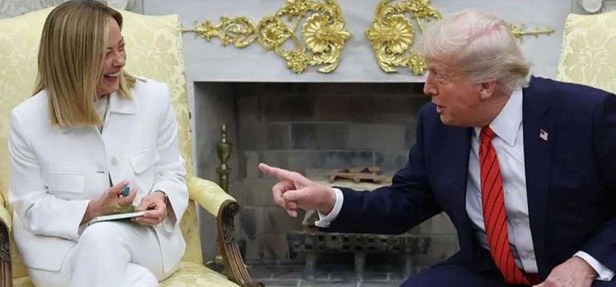 ट्रम्पले युरोपेली संघबाट आयात हुने सामानहरूमा २० प्रतिशत कर लगाएपछि र त्यसपछि ९० दिनको लागि निलम्बन गरेपछि मेलोनी अमेरिका भ्रमण गर्ने पहिलो युरोपेली नेता हुन्। एजेन्सी