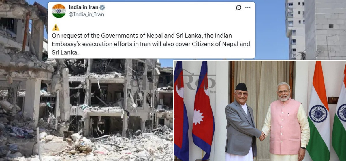 नेपालसँगै भारतले श्रीलंकाका नागरिकलाई पनि उद्धार गर्ने भएको छ। इरानस्थित भारतीय दूतावासले भनेको छ, ‘नेपाल र श्रीलंका सरकारको अनुरोधमा भारतीय दूतावासले अब इरानमा फसेका नेपाली र श्रीलंकाली नागरिकहरूलाई पनि उद्धार गर्न मद्दत गर्नेछ।’