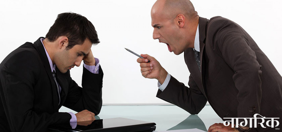 काठमाडाैं - यदि तपाई कुनै नोकरीमा आवद्ध हुनुहुन्छ भने तपाईको काम गर्ने क्षमता दुई गुणाले वृद्धि भएर जान्छ जब तपाईको कार्यालय प्रमुखले तपाईसँग राम्रो व्यवहार गर्छ। क्वार्टर म्यागेजिनमा प्रकाशित एक अनुसन्धानले अमेरिकाका करिव ७५ प्रतिशत कामदारहरुको डिप्रेसनको मुख्य कारण उनीहरुको हाकिम भएको खुलासा भएको छ। हावर्ड विजनेश स्कुल र स्ट्यानफोर्ड विश्वविद्यालयका शोधकर्ताहरुले गरेको २ सय भन्दा बढी अध्ययनले कामका क्रममा लिइने तनावले स्वास्थ्यलाई नकारात्मक असर पुर्याउने र यो चुरोट भन्दा बढी हानिकारक हुने देखाएको हो। तनावको मुख्य कारण भने खराब प्रवृत्तिको हाकिम रहेको छ।